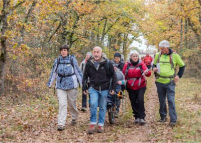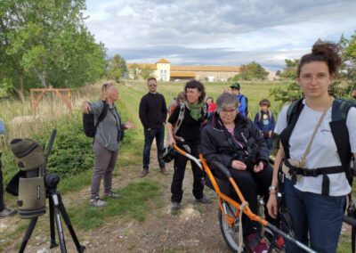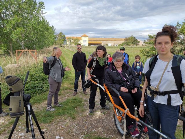Une très belle promenade organisée par le Gée Aude en partenariat avec UMEN. Accueillis par deux animateurs du Groupe d’Éducation à l’Environnement de l’Aude nous avons pu participer de 14h à 17h à une sortie “nature” riche en découvertes. David, animateur nature/environnement est accompagné par Karine animatrice et conteuse. Un duo de choc qui a ravi notre sens de l’observation, notre envie de connaissances sur ce qui nous entoure dans le milieu naturel et notre imaginaire. Nous scrutons le ciel bien chargé, prions pour que les gouttes de pluie cessent le temps de préparer les 2 joëlettes mises à notre disposition. Le parcours démarre au Domaine des Cheminières [… ] Ce qui reste des bâtisses en dit long sur les activités de l’époque. Ensuite nous entamons un parcours de 4km qui nous fera découvrir un sentier arboré, une traversée de chêneraie et les abords du Canal du Midi. L’ensemble, ponctué d’arrêts pour toucher, sentir, respirer. Pour écouter les connaissances que nous transmet David et ouvrir nos oreilles pour écouter Karine et ses contes romantiques en lien avec DAME NATURE. Nous croisons enfin le Moulin du Vivier dernier en activité sur le Canal du Midi et les écluses ST SERNIN et du VIVIER. [… ] Je vous invite vraiment à participer à ces sorties toujours de très bonne qualité. C’est un heureux partenariat.